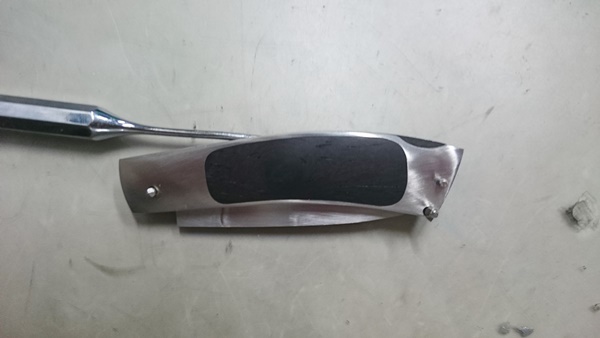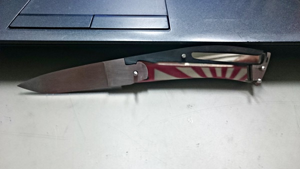 畳んだ時の状態です。ブレードが完全にハンドル内に収まるようにするのは、けっこう難しいんです。