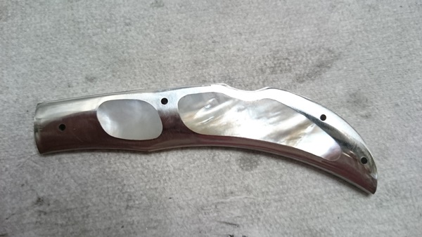 やっぱナイフ用の高価な材料を購入するしかないんでしょうかね。安物は貝の外側は削っていないので貝の層としてはかなり薄くなってしまいますしね。
