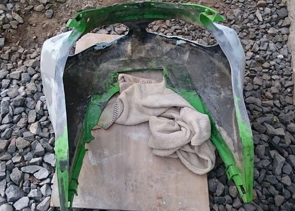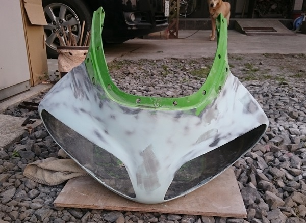 こちら側は研磨でFRP地が出てしまって巣穴が開いてしまったので修正しました。