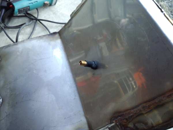こんな日はアルゴン溶接は不向きですので、本日はタンクのリークチェック用のバルブを取り付けました。