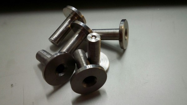 これが作りましたM6の溶接ナットになります。20ミリのステン棒から製作しました。