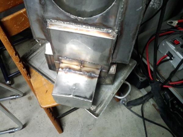 こういう部分は、溶接熱で鉄板が逃げていってしまうので溶接が難しいですね。ちょっとだけ仮付けして叩いての繰り返しです。時間がかかりますね・・・。